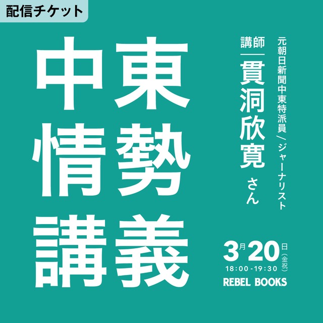 3/20(金祝)中東情勢講義の配信チケットです ★YouTubeの限定公開で配信します(登録不要) ★開催後2ヶ月間アーカイブ視聴できます (来店参加希望の方はこちら→ https://forms.gle/ttJFH3zpvYtds2yo7 ) ーーー 元朝日新聞中東特派員のジャーナリスト・貫洞欣寛さんに、中東情勢、特に今回はパレスチナ問題について教えていただきます。以前貫洞さんのシリア情勢に関する講義を聞いたのですが、非常にわかりやすく勉強になりました。今回の資料も見せていただきましたが、ここまで深い解説をじっくり聞ける機会はなかなか無いと思います。ぜひ多くの方に聞いていただきたいです。 <講師コメント> 2023年10月7日のハマスの越境攻撃を機に、著しく激化したパレスチナ側とイスラエル軍の紛争。ガザ地区での死者は7万人を超え、220万人が暮らし都市化が進んでいたガザは、ほぼ廃墟と化した。ヨルダン川西岸地区と東エルサレムでも、パレスチナ人の家屋破壊や追放が続いている。トランプ政権の介入でガザ地区では昨秋、停戦が発効したが、その後もガザ地区への攻撃は止まっておらず、イスラエル政府はガザや西岸で人道援助活動を行ってきた国際NGO37団体の活動登録を2025年末で失効させた。 パレスチナ問題は、なぜ解決しないのか。なぜアメリカはイスラエル支援を続けるのか。ネタニヤフ政権、トランプ政権、そしてパレスチナ側の各派はそれぞれ、何を目指しているのか。元朝日新聞中東特派員のジャーナリストが、分かりやすく解説する。 ーーー 【日時】 3月20日(金祝) 18:00開始 19:30終了予定 ★配信終了後も開催日の2ヶ月後までアーカイブ視聴が可能です。 ★アーカイブは開催日の1週間後まで購入可能です。 【料金】 1500円(税込) ★購入完了後、配信URLを記載したPDFがダウンロードできるようになります。 ★PDFのダウンロード期限が購入から7日間のため、後で見る場合でもダウンロードだけ先にしておいてください(視聴自体は開催後2ヶ月間可能です)。 【注意事項(必ずお読みください)】 ・視聴URLの 共有・転載・SNS投稿は禁止です(チケット購入者のみ視聴可能です)。 ・録画・録音・再配布はご遠慮ください。 ・デジタルコンテンツのため返品・キャンセルはできません。