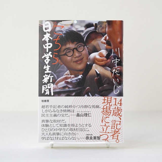 ーーー メディア最注目の中学生記者が、権力に切り込む本格ルポルタージュ、ついに刊行。 信条は「誰にも遠慮せずに書きたいことを書く」。取材対象は、外務省、大阪・関西万博、IRカジノ、そして混迷を極めた兵庫県知事選――。 2023年春に「日本中学生新聞」を創刊して以来、著名政治家や社会問題の現場に足を運び、荒削りながらも自分の言葉で取材と発信を重ねてきた現役中学生記者・川中だいじ。 本書では、これまでの取材の記録だけでなく、現場で感じた手応えや迷い、葛藤もあわせて描き出す――ひとりの記者が現場に立ち、民主主義を問い続ける、かつてないノンフィクション。 「超若手記者の純粋かつ冷静な視線。しがらみなき情熱は民主主義の宝だ。」 ──畠山理仁(フリーランスライター) 「真摯な取材だ。体験として知識を得ようとするひとりの中学生の取材日記に、大人も真摯に向き合い学ばなければならない。」 ──奈良美智(美術作家) ーーー 【著者プロフィール】 川中だいじ 2010年、大阪市生まれ。「日本中学生新聞」記者。小学3年生のときに政治に関心を持ち、2023年に「日本中学生新聞」を創刊。「誰にも遠慮せずに書きたいことを書く」をモットーに、選挙をはじめ大阪・関西万博、IRカジノ、森友学園問題などを取材し、SNSやYouTubeで発信している。雑誌やウェブメディアへの寄稿も多数。テレビ大阪の公式YouTubeチャンネル「大阪NEWS【テレビ大阪ニュース】」内の番組「中学生記者・だいじの対談クラブ」で聞き手を務めた。本書が初の著作となる。 ーーー 四六判 ソフトカバー 320ページ 送料:300円