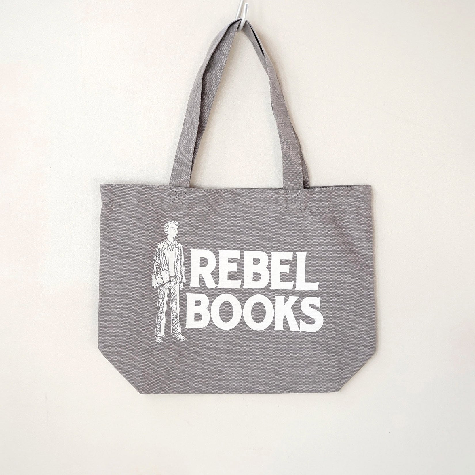REBEL BOOKSオリジナルトートバッグのSMサイズです。定番よりも高さが低いバッグの要望がたくさんあり、制作しました。12オンスのキャンバス生地、強度は十分で、本をガシガシたくさん入れても問題ありません。容量は6リットル。持ち手は肩掛け可能な長さです。