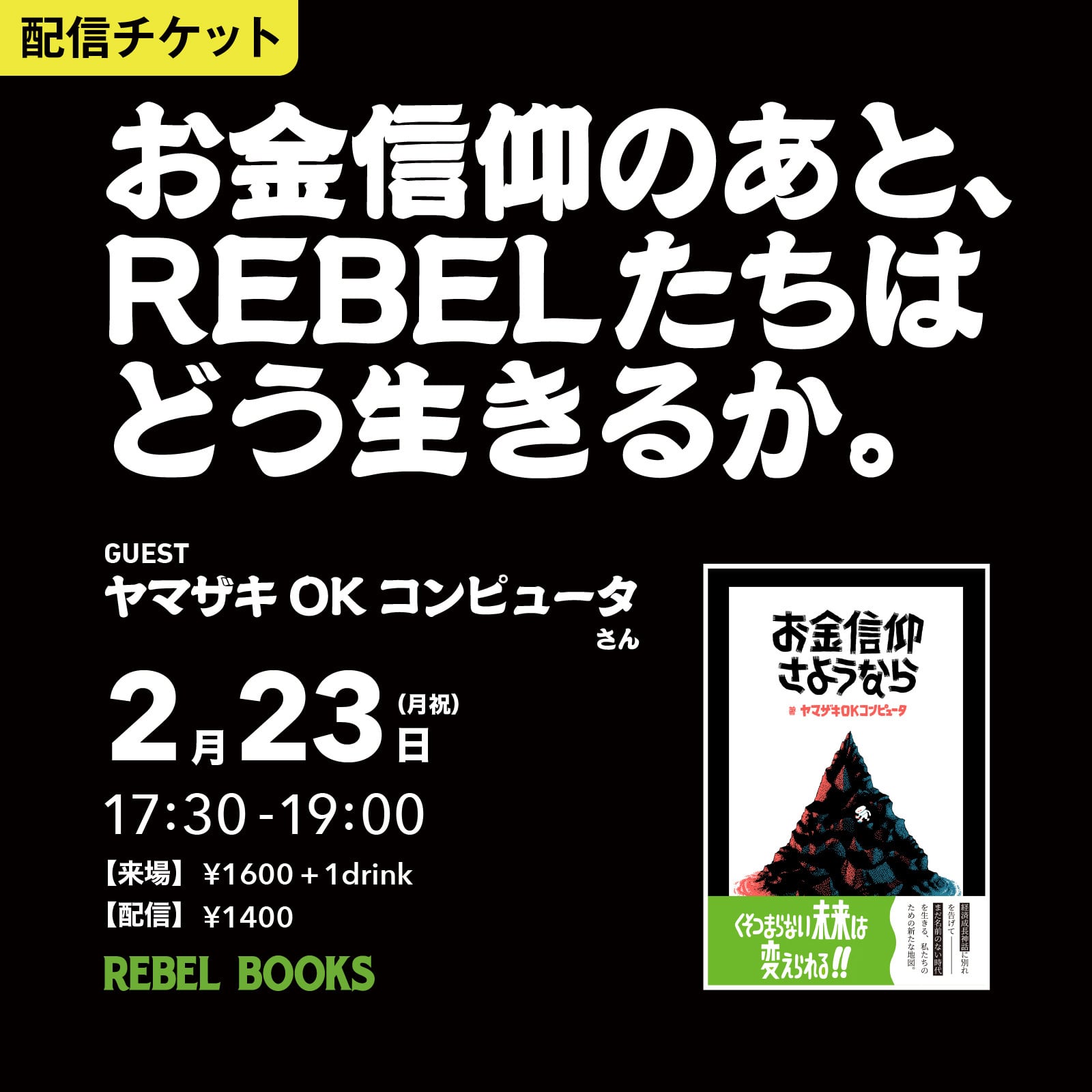 レベルブックスで170冊以上売れて投資にまったく興味のなかった人たちの先入観を大きく変え、地元の個人店を愛しながら生きている人たちに「我々こそむしろ投資をすべきでは」と思わせた、『くそつまらない未来を変えられるかもしれない投資の話』の著者であるヤマザキOKコンピュータさんが、その先の未来を考える新刊『お金信仰さようなら』の刊行を記念してレベルブックスに登場。当店の店名を踏まえ、これからのREBEL(=反逆者、反抗者の意)はどう生きていくのかを、いち早くお金信仰に別れを告げて新しい未来を生きている人たちの例を引きながら一緒に考えていきます。