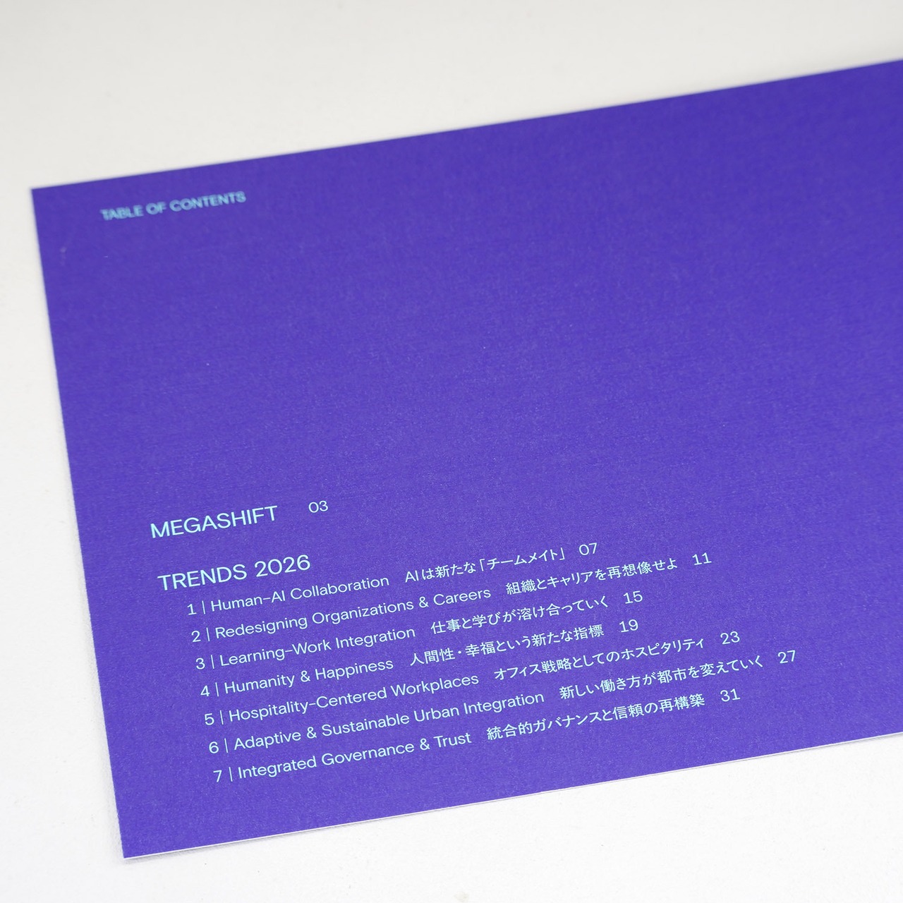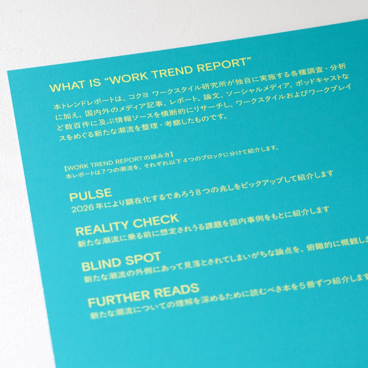 本レポートでは、加速し続ける自己経営のループのなかで、いかにして人間的な「間」や「幸福」を取り戻し、新たな働き方の地平を切り拓くことができるのかを問い直します。国内外の膨大な情報ソースを横断的に分析し、2026年に向けて顕在化する働き方の変化を、7つのトレンドとして整理・定義しました。