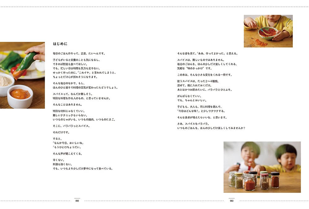 「子どもにはスパイスが早いと思っていませんか?そんなことはありません」という本書。辛くないスパイスを使った料理を子どもと楽しみたいスパイス好きのお父さんお母さんにはとてもありがたい一冊。