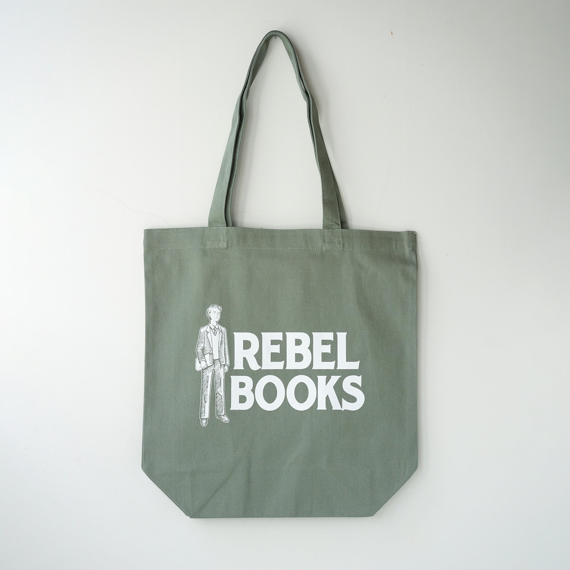 REBEL BOOKSオリジナルトートバッグです。8.03オンスのキャンバス生地、強度は十分で、本をガシガシたくさん入れても問題ありません。容量は10リットル。生地は固すぎず、畳むとそれなりにコンパクトになります、持ち歩きにも便利。持ち手は肩掛け可能な長さです。